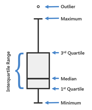 A data visual that show groups of numerical data through quartiles. A box plot displays median, higher/lower quartiles and maximum/minimum. Outliers may be plotted as individual points.