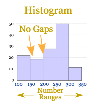 A data visual that groups numeric data into bins, displaying the bins as divided columns. Histograms have no gaps.